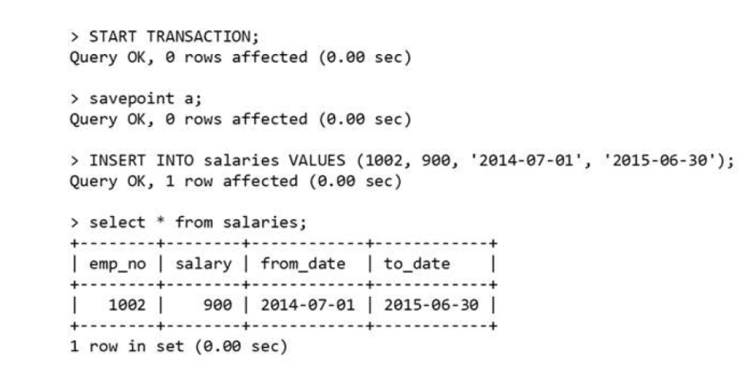 - 트랜잭션을 시작하고, 세이브포인트 a를 설정했다.