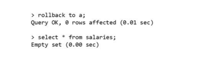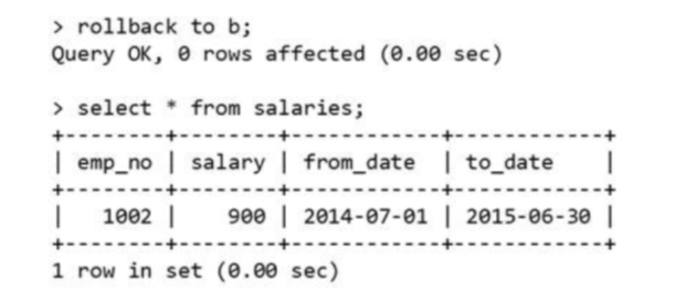 - 따라서 b 이후에 수행한, 업데이트문은 취소되므로, 샐러리는 900으로 돌아간다.