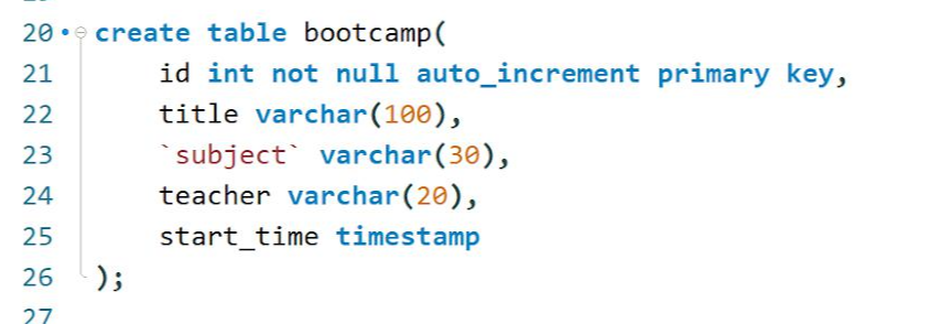 - 그래서 테이블 생성문을 사용해서 스키마를 정의합니다.
