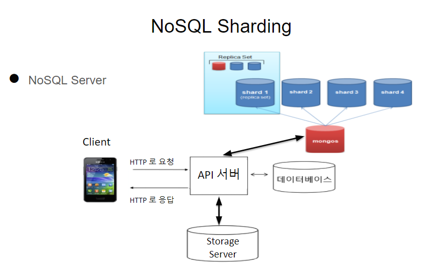 - 두번째로, NoSQL은 오토 샤딩 기능이 있어서, 대용량의 데이터를 자동으로 분산 처리합니다.